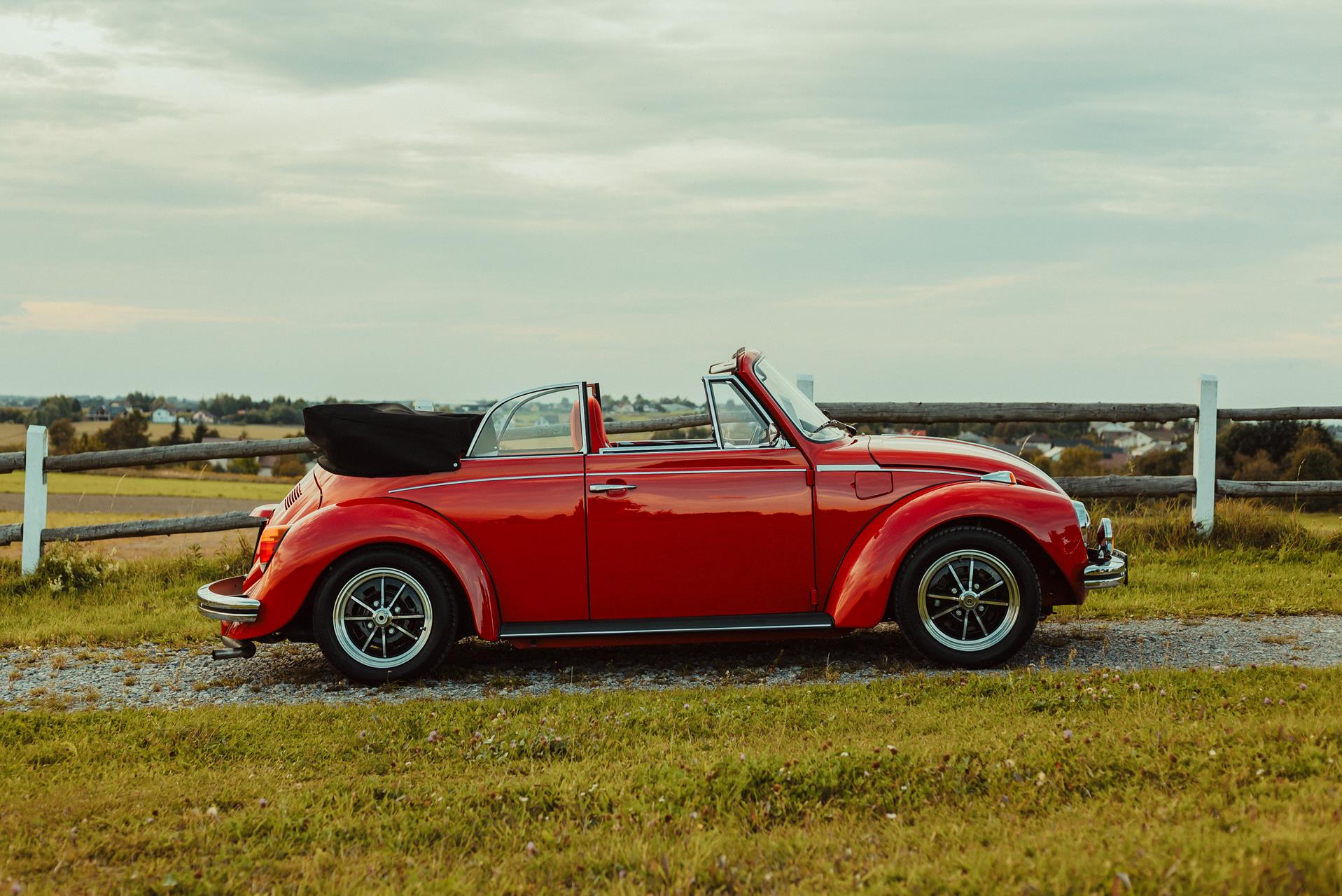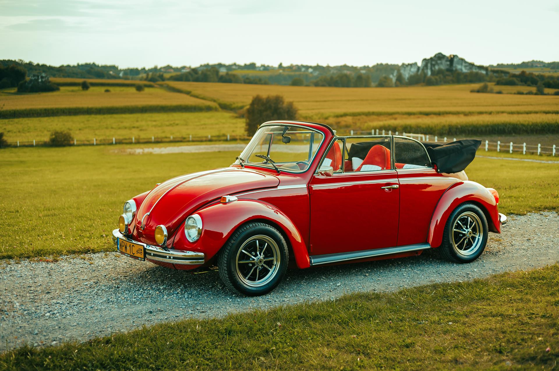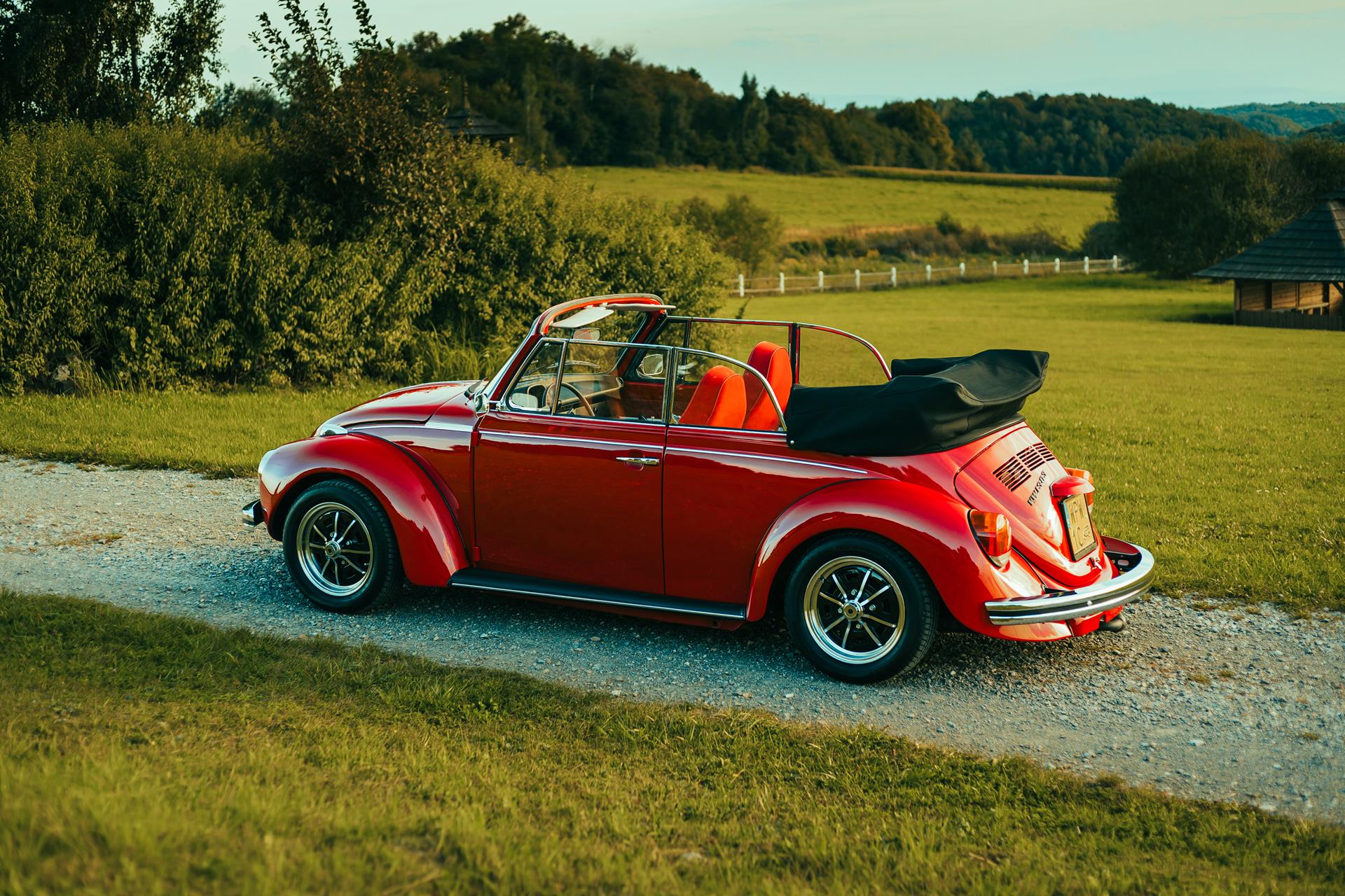 Prezentowany na naszych stronach Volkswagen 1303S Kabrio został wyprodukowany w czerwcu 1973 roku. Co ciekawe ten Garbus już dwa dni po opuszczeniu fabryki czyli 21 czerwca 1973 roku został dostarczony do punktu sprzedaży VW w Augsburgu. Oczywiście nasz Garbus Kabrio nie wyglądał tak jak obecnie. W momencie zakupu był butelkowo – zielony i mocno zmęczony życiem. Możecie zobaczyć to na zdjęciach. Jednak w dniu swoich narodzin, zgodnie z certyfikatem Volkswagen Classic Parts był pomalowany na czerwono. Oryginalny kolor to L32K Phoenix Red. W naszej wersji trochę odeszliśmy od oryginału ale w mojej kolekcji chciałem mieć czerwonego Garbusa 1303 Kabrio. Tapicerka którą miał nasz bohater w oryginale to czarny skaj. Całość została wykonana przez p. Leonida z Oławy, który wykonał wszystkie tapicerki do moich Garbusów. Ja zamieniłem oryginalną tapicerkę na biało-czerwony zamsz z czarnym dachem z oryginalnego Sonnelandu. Dach w całości został zamówiony w firmie cabrio.de